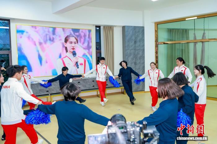 圖為“決勝巴黎·綻放奧運(yùn)–––奧運(yùn)冠軍面對(duì)面”巡回宣講活動(dòng)西藏站走進(jìn)軍營(yíng)與女官兵歡樂共舞現(xiàn)場(chǎng)?;顒?dòng)方 供圖
