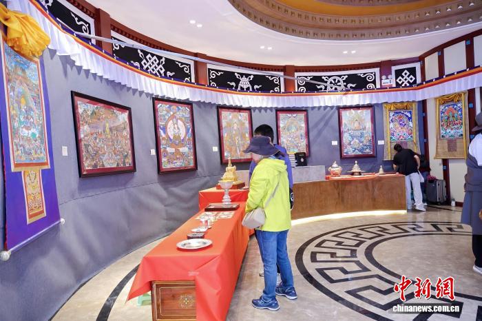在展廳內(nèi),前來參觀的觀眾人頭攢動(dòng),他們紛紛駐足欣賞,不時(shí)拿出手機(jī)拍照記錄每一幅經(jīng)典之作,贊嘆唐卡藝術(shù)的精湛技藝和豐富內(nèi)涵。