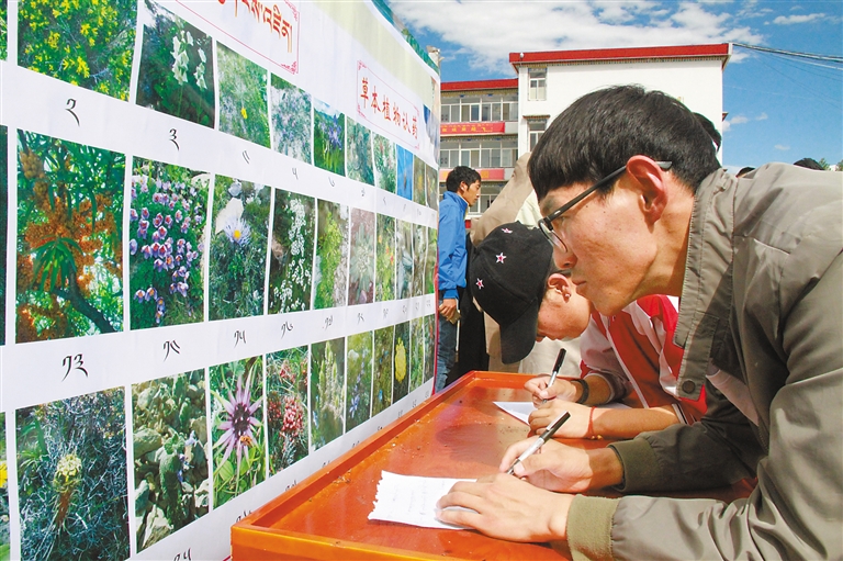 西藏藏醫(yī)藥大學(xué)學(xué)生參加藏醫(yī)藥草本植物認(rèn)藥知識競賽。西藏藏醫(yī)藥大學(xué)提供