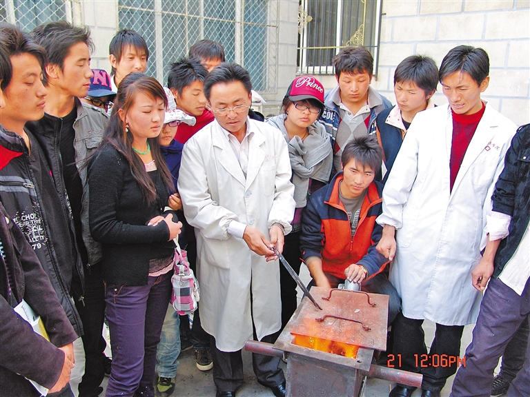 西藏藏醫(yī)藥大學(xué)開展藏藥金屬炮制和鍛灰工藝現(xiàn)場教學(xué)。西藏藏醫(yī)藥大學(xué)提供