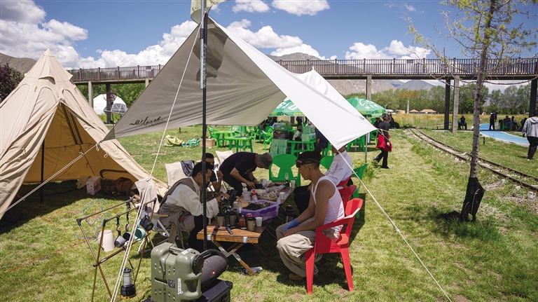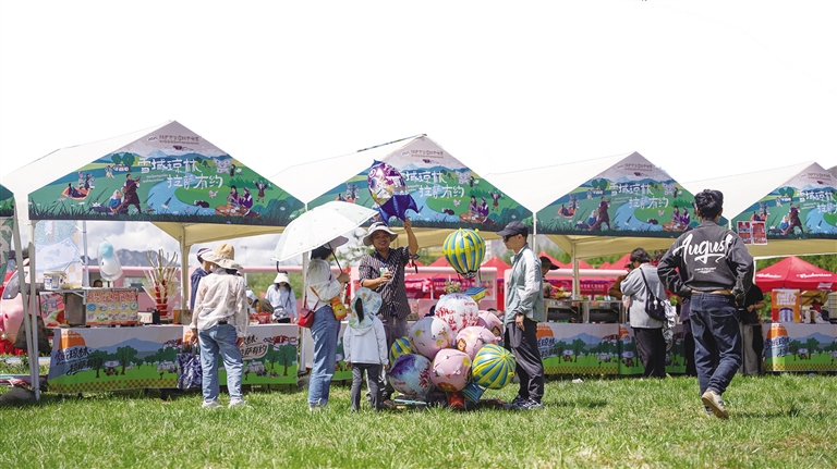 記者看到,綠野市集“沖賽康”充滿了煙火氣,30余家特色攤位齊聚林間。這里不僅有藏式甜茶、糌粑制品等傳統(tǒng)美食,讓游客大飽口福,還有氆氌文創(chuàng)、非遺手作等特色產(chǎn)品,滿足游客的購(gòu)物需求。此外,互動(dòng)游戲與民俗體驗(yàn)也吸引了眾多游客參與,營(yíng)造出充滿活力的林卡生活場(chǎng)景。
