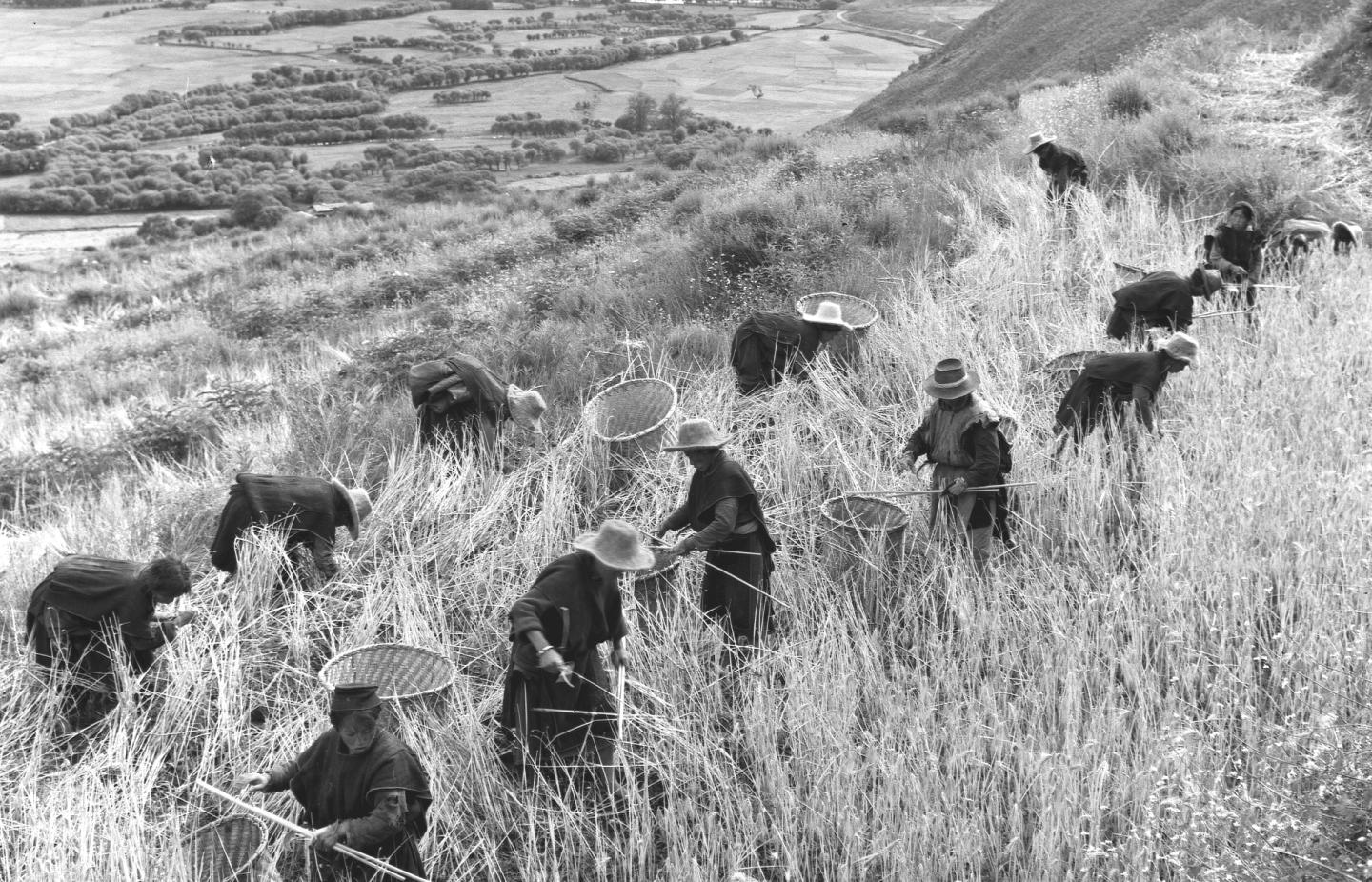 1965年8月,林芝縣(現(xiàn)為林芝市)立定鄉(xiāng)組織農(nóng)民收割青稞。新華社記者 馬競秋 攝