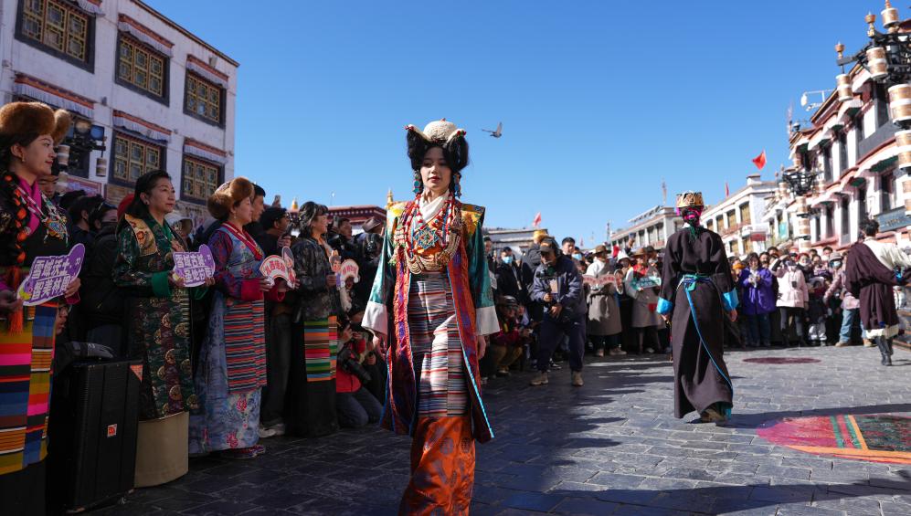 2025年1月3日,“拉薩新年服飾秀”上模特在拉薩八廓街巡游。新華社記者 晉美多吉 攝