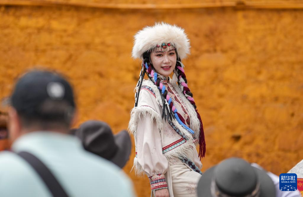 8月19日,游客在拉薩老城區(qū)身著藏裝旅拍。新華社記者 晉美多吉 攝