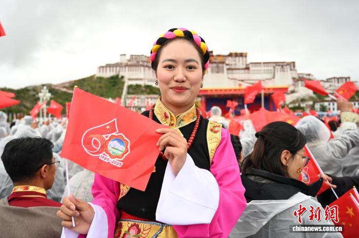 8月21日,青年律師次仁卓瑪在布達(dá)拉宮廣場參加慶祝活動。中新社記者 趙朗 攝