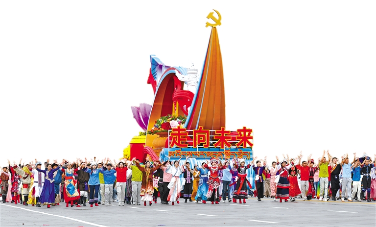 九車連珠,濃縮60年滄桑巨變;萬眾歡騰,抒發(fā)對黨和國家的感恩之情。