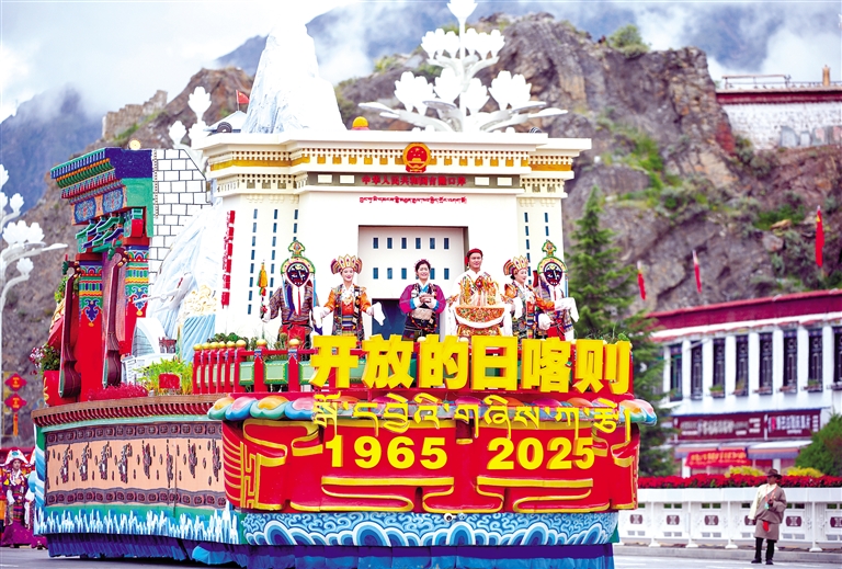 “開放的日喀則”彩車。本網(wǎng)記者 潘多 攝
