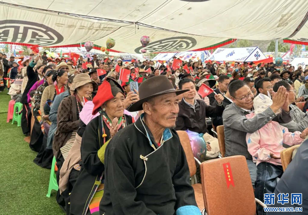 24日,群眾在觀看“珠峰兒女心向黨 開(kāi)放發(fā)展譜新篇”南木林縣慶祝西藏自治區(qū)成立60周年文藝匯演。(受訪者供圖)