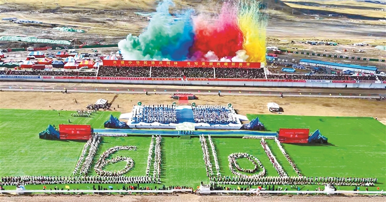 來自四川、青海及西藏本地的馬術(shù)隊(duì)英姿颯爽,躍馬揚(yáng)鞭;千人共舞《禮贊甲子》,舞步豪邁,衣袂飛揚(yáng),再現(xiàn)西藏六十年的滄桑巨變;器樂合奏《風(fēng)從浙江來·樂在那曲揚(yáng)》則巧妙融合江南韻律與草原風(fēng)情,奏響對口支援的深情厚誼;《馱鹽之歌》悠揚(yáng)響起,仿佛將人們帶回了古老的歲月,展現(xiàn)了高原兒女堅(jiān)韌不拔的精神……賽馬場核心區(qū)域,傳統(tǒng)馬術(shù)與現(xiàn)代藝術(shù)在這里交相輝映,引來掌聲如潮、喝彩不絕。