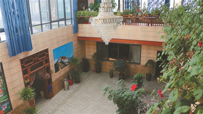 “現(xiàn)在的日子,以前想都不敢想。”剛組穿好睡衣從浴室出來,倒上一杯酥油茶,愜意地靠在沙發(fā)上。陽光穿過屋頂?shù)牟A旎ò?,在一樓墻壁投下斑駁的光影。望著二樓的房間,剛組回憶起了半個多世紀前。