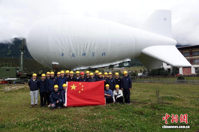 9月18日下午,“極目一號”浮空艇大氣觀測試驗完成任務(wù)前相關(guān)測試工作,項目團(tuán)隊代表在現(xiàn)場合影。中新網(wǎng)記者 孫自法 攝