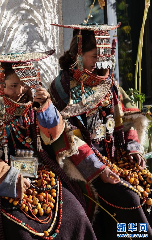 圖為身穿普蘭服飾的科迦村村民在休息(9月23日攝)。新華網(wǎng) 柑丹鴦琦 攝