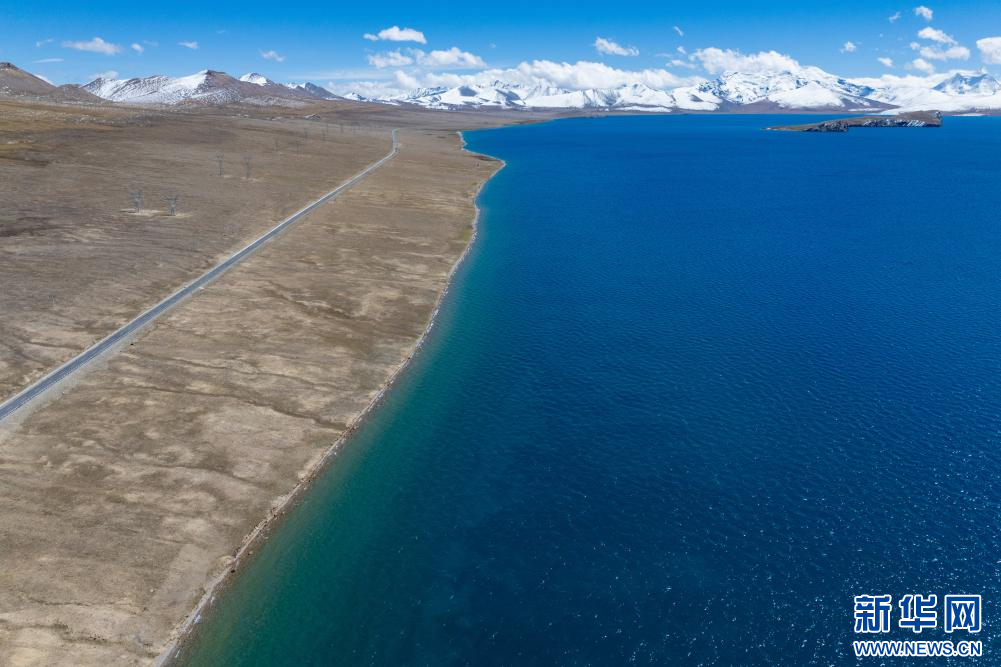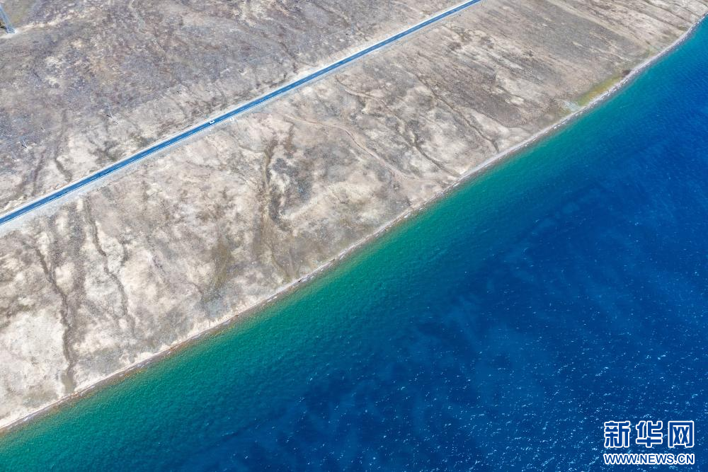 10月9日拍攝的普莫雍錯(cuò)觀景點(diǎn)(無(wú)人機(jī)照片)。新華網(wǎng) 旦增努布 攝