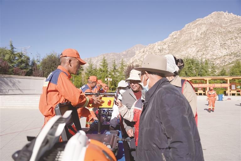在資料發(fā)放環(huán)節(jié),大隊宣傳員向過往群眾遞發(fā)《森林防火條例》摘要手冊及防災(zāi)減災(zāi)科普折頁等宣傳資料200余份,確保防災(zāi)政策、防火常識“廣覆蓋、無遺漏”;案例講解環(huán)節(jié),宣傳人員結(jié)合周邊近年防災(zāi)減災(zāi)典型案例與森林火災(zāi)真實事件,用藏漢雙語解讀違規(guī)用火、災(zāi)害應(yīng)對不當(dāng)?shù)膰?yán)重后果,明確違反相關(guān)規(guī)定的法律責(zé)任,讓群眾直觀感受到防災(zāi)減災(zāi)與防火的緊迫性;裝備展示區(qū),專業(yè)救援車輛、滅火器材及救援裝備逐一陳列,大隊宣傳員細(xì)致講解各類裝備的用途與操作原理,既充分展現(xiàn)應(yīng)急救援實力,也有效加深群眾對防災(zāi)減災(zāi)、防火救援工作的認(rèn)知;有獎問答與答疑環(huán)節(jié),通過趣味互動充分激發(fā)群眾參與熱情,針對家庭用火安全、日常防災(zāi)避險、林區(qū)作業(yè)防火等常見疑問,宣傳員耐心解答、細(xì)致指導(dǎo),做到“有問必答、解惑到位”。