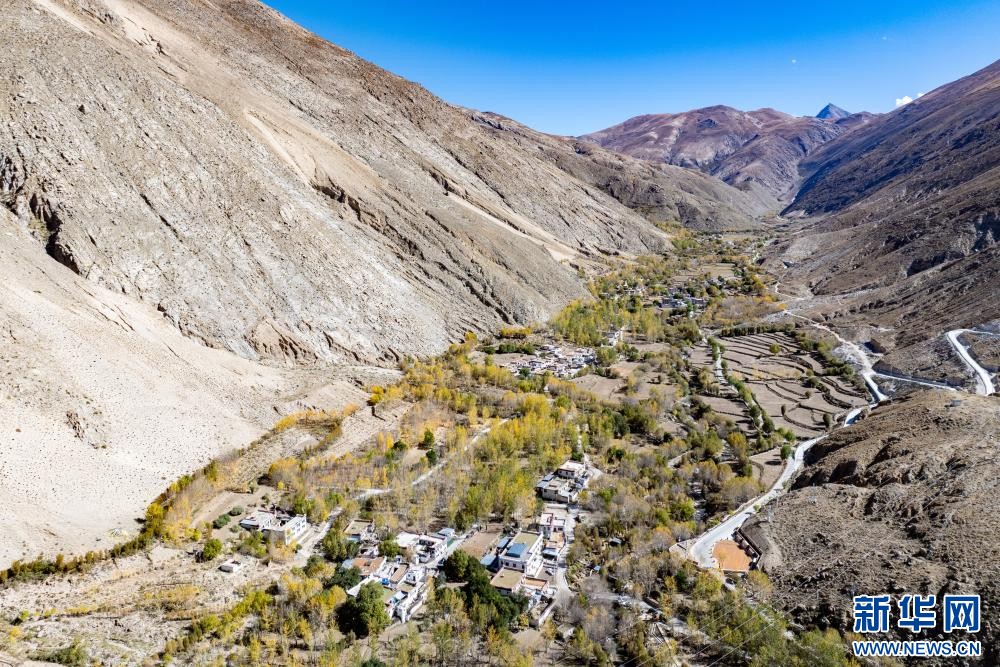 10月17日拍攝的西藏拉薩市尼木縣吞巴鎮(zhèn)吞達(dá)村(無(wú)人機(jī)照片)。新華網(wǎng) 旦增努布 攝
