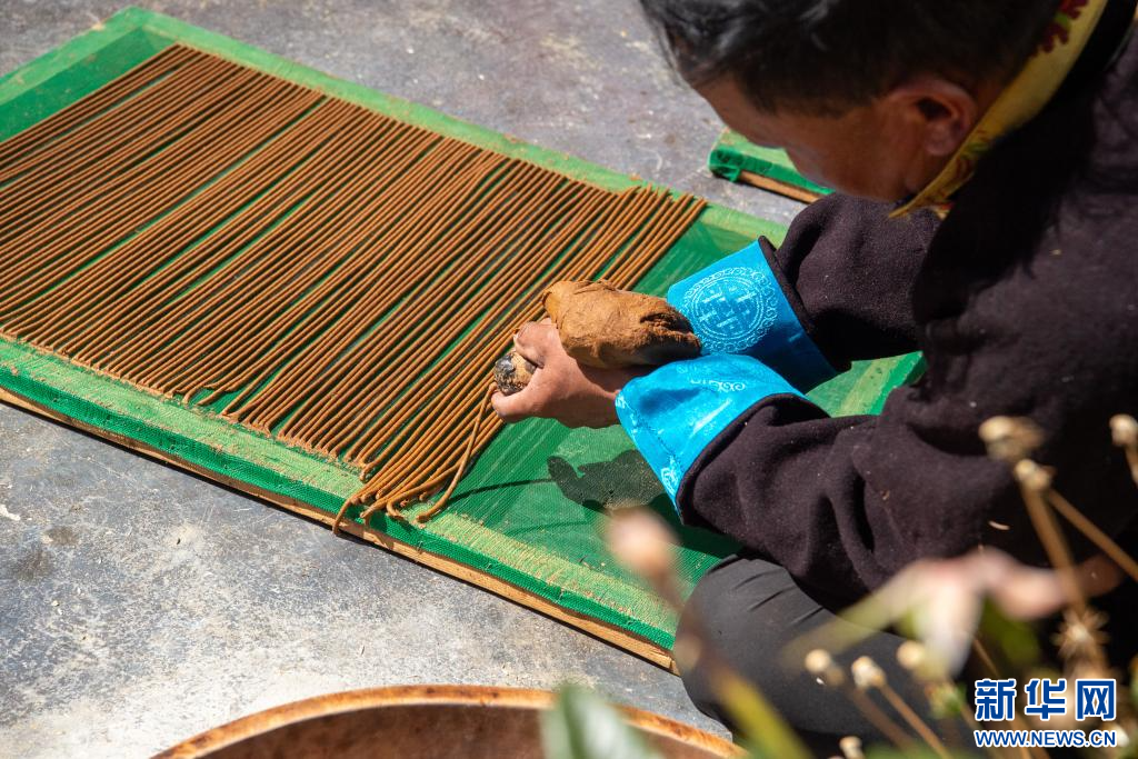 10月17日,西藏拉薩市尼木縣吞巴鎮(zhèn)吞達(dá)村縣級(jí)非遺傳承人普布次仁在制作藏香。新華網(wǎng) 旦增努布 攝