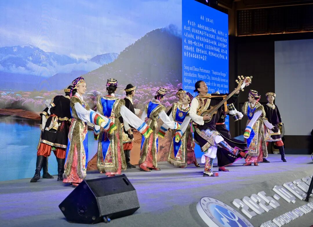 開幕式在《吉祥工布》的旋律中拉開了序幕。舞者們身著色彩斑斕的工布服飾,仿佛從雪山深處走來的精靈,正以熱情的舞步迎接八方賓客,每一個轉(zhuǎn)身、跳躍都充滿了對遠(yuǎn)道而來客人的真摯歡迎。