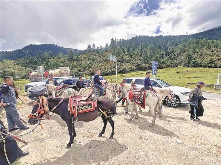 林芝市魯朗景區(qū)內,游客在體驗當地特色騎馬項目。 記者 白瑪澤旺 攝