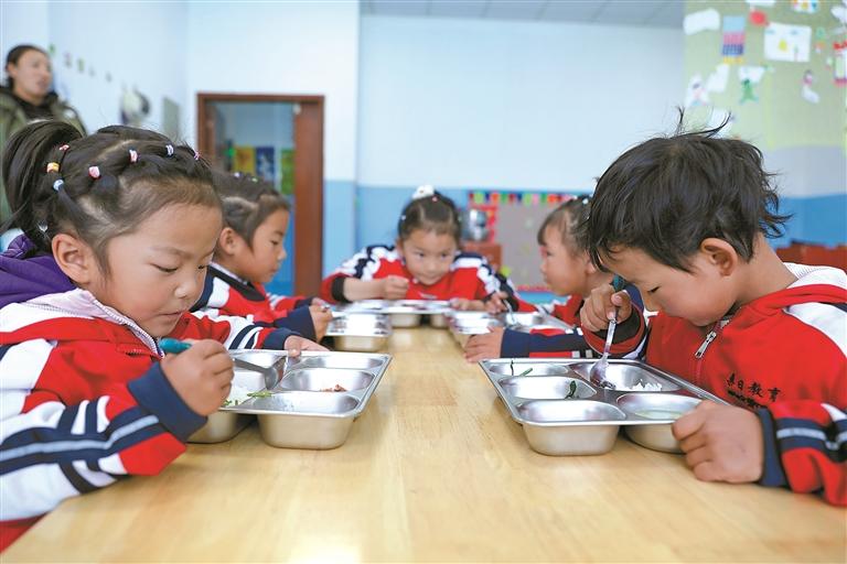 扎嘎新村的幼兒園里,孩子們正在吃營養(yǎng)餐。通訊員 侯勇 嘉措 攝