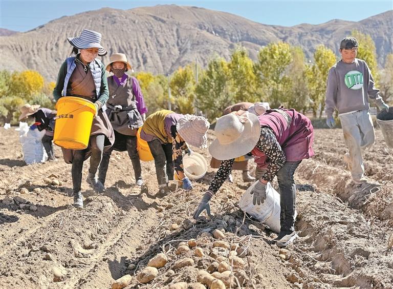 圖為南木林縣艾瑪鄉(xiāng)山巴村村民正在分揀土豆。記者 旦增嘎瓦 攝