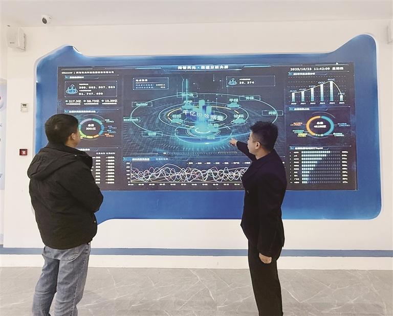西藏網(wǎng)智天元科技集團股份有限公司工作人員正在介紹企業(yè)實時數(shù)據(jù)分析。 圖由拉薩市稅務(wù)局柳梧新區(qū)稅務(wù)分局提供