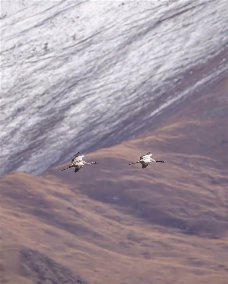 最初巡護時,沒有先進設備,全靠雙腳丈量、雙眼巡查,餓了啃干糧,冷了裹藏袍。如今保護力度加大,黑頸鶴數(shù)量逐年增長,越來越多村民也加入守護行列,沒人再驚擾這些“高原貴客”?!昂陬i鶴是吉祥象征,保護它們就是保護家園?!?5歲的頓珠次仁鬢角染霜,卻如他守護的老鶴般,初心未改。對他而言,黑頸鶴是“從小熟悉的老朋友”,林周既是自己的家,也是鶴群的家。這份守護,早已超越職責,成為人與自然和諧共生的生動注腳。