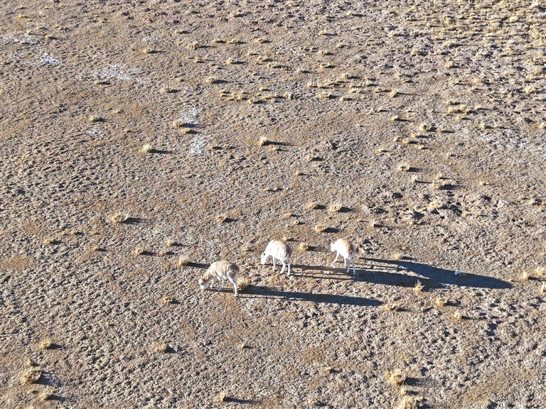 我們下車。未來得及扣上的外套瞬間被風(fēng)灌滿,幾乎要撕裂。雙手在寒風(fēng)中顫抖著拉上拉鏈。舉起手機(jī)、相機(jī),卻不知如何構(gòu)圖,有人笑著感嘆:“這片天地太大了,大得失去了參照。完全拍不出這份壯美?!彼餍源蠹野咽执Щ匾露担?80度轉(zhuǎn)動著腦袋、用眼睛細(xì)細(xì)掃描,將羌塘高原的生態(tài)盛景直接刻入記憶。