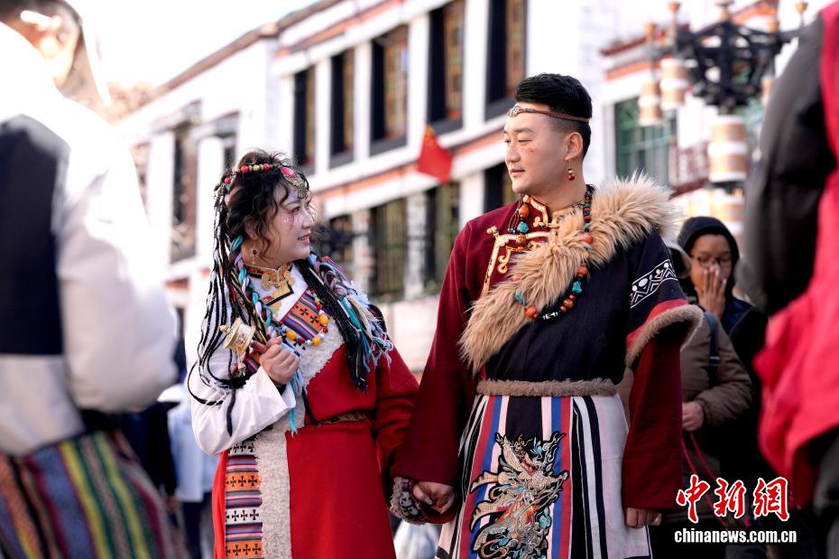 12月24日,游客在拉薩市八廓街拍攝藏服寫(xiě)真。在第八輪“冬游西藏”活動(dòng)持續(xù)推動(dòng)下,不少游客選擇在冬季走進(jìn)西藏,感受雪域高原的獨(dú)特魅力。除了免費(fèi)游覽布達(dá)拉宮、羅布林卡等景區(qū),體驗(yàn)藏服寫(xiě)真也成為大多數(shù)游客行程中的“必選項(xiàng)”。中新社記者 李林 攝