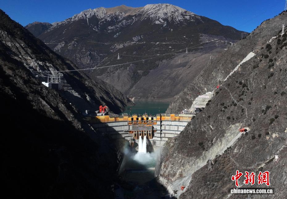 12月27日,中國在建海拔最高雙曲拱壩電站——葉巴灘水電站首批機組正式投產(chǎn)發(fā)電。葉巴灘水電站位于四川省甘孜州白玉縣與西藏自治區(qū)貢覺縣交界的金沙江干流上。水電站總裝機容量224萬千瓦,此次首批投產(chǎn)發(fā)電的機組為4號和3號機組。圖為12月26日,航拍葉巴灘水電站外景。(無人機照片)中新社記者 王磊 攝
