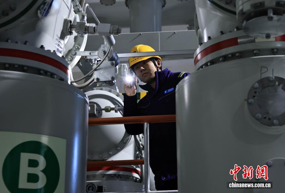 12月27日,中國在建海拔最高雙曲拱壩電站——葉巴灘水電站首批機組正式投產(chǎn)發(fā)電。葉巴灘水電站位于四川省甘孜州白玉縣與西藏自治區(qū)貢覺縣交界的金沙江干流上。水電站總裝機容量224萬千瓦,此次首批投產(chǎn)發(fā)電的機組為4號和3號機組。圖為12月24日,值班員在GIS巡視檢查。中新社記者 王磊 攝