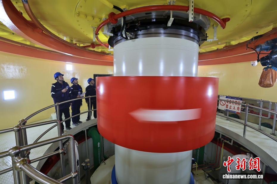12月27日,中國在建海拔最高雙曲拱壩電站——葉巴灘水電站首批機組正式投產(chǎn)發(fā)電。葉巴灘水電站位于四川省甘孜州白玉縣與西藏自治區(qū)貢覺縣交界的金沙江干流上。水電站總裝機容量224萬千瓦,此次首批投產(chǎn)發(fā)電的機組為4號和3號機組。圖為12月25日,巡檢員在機組運行水車室巡查。中新社記者 王磊 攝