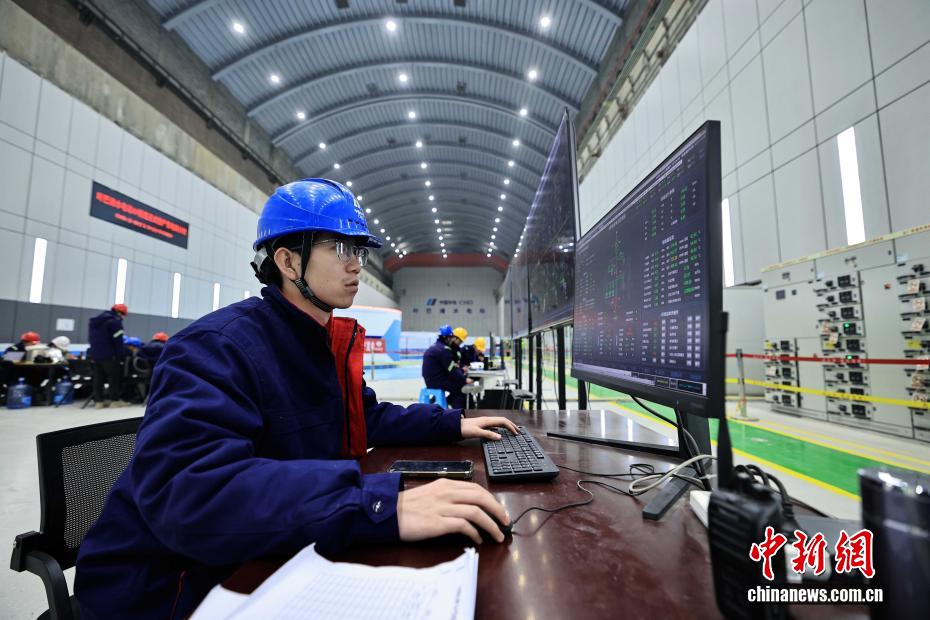 12月27日,中國在建海拔最高雙曲拱壩電站——葉巴灘水電站首批機組正式投產(chǎn)發(fā)電。葉巴灘水電站位于四川省甘孜州白玉縣與西藏自治區(qū)貢覺縣交界的金沙江干流上。水電站總裝機容量224萬千瓦,此次首批投產(chǎn)發(fā)電的機組為4號和3號機組。圖為12月27日,工作人員在現(xiàn)場監(jiān)測機組運行狀態(tài)及各項參數(shù)。中新社記者 王磊 攝