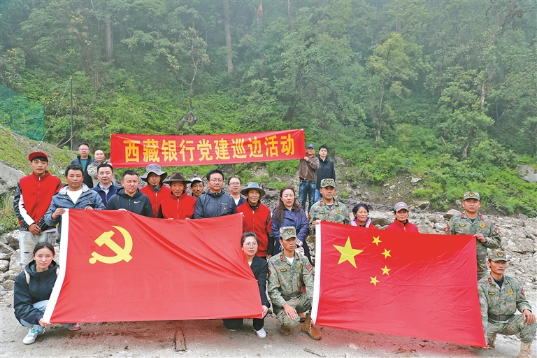 圖為西藏銀行與洛扎縣拉郊鄉(xiāng)開展黨建巡邊活動(dòng)。
