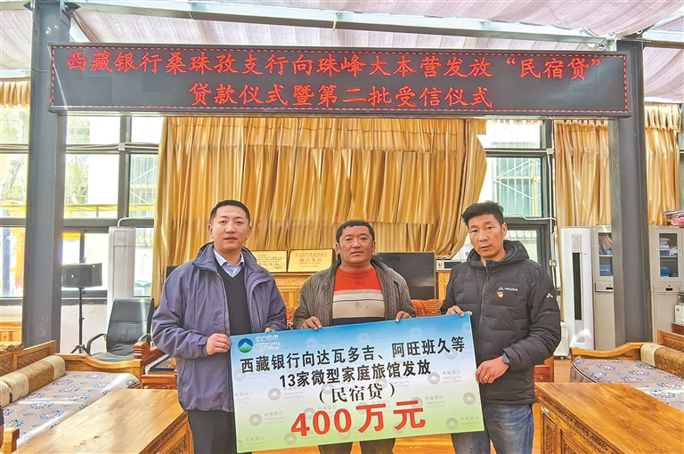 圖為西藏銀行向珠峰大本營13家微型家庭旅館發(fā)放“民宿貸”貸款。