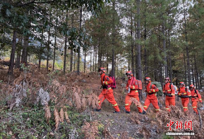 圖為指戰(zhàn)員在林區(qū)攜裝巡護(hù)。費(fèi)賢浩 攝