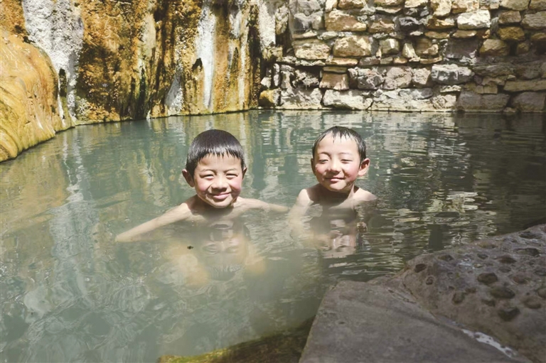 孩子們在德仲溫泉玩耍。圖由次昂提供