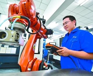 河北廊坊一家公司的工作人員在操作機(jī)器人。新華社發(fā)