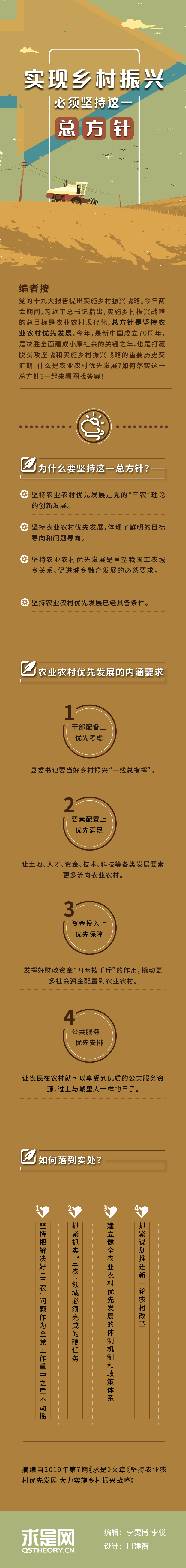 編者按:黨的十九大報告提出實施鄉(xiāng)村振興戰(zhàn)略。今年兩會期間,習(xí)近平總書記指出,實施鄉(xiāng)村振興戰(zhàn)略的總目標(biāo)是農(nóng)業(yè)農(nóng)村現(xiàn)代化,總方針是堅持農(nóng)業(yè)農(nóng)村優(yōu)先發(fā)展。今年,是新中國成立70周年,是決勝全面建成小康社會的關(guān)鍵之年,也是打贏脫貧攻堅戰(zhàn)和實施鄉(xiāng)村振興戰(zhàn)略的重要歷史交匯期。什么是農(nóng)業(yè)農(nóng)村優(yōu)先發(fā)展?如何落實這一總方針?一起來看圖找答案!