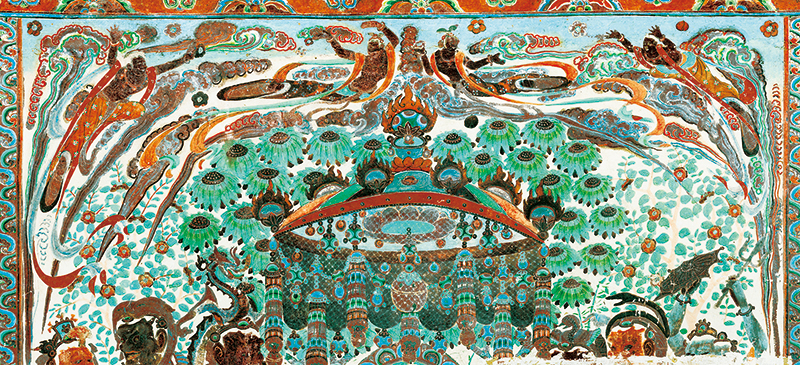 敦煌是古代中國(guó)認(rèn)識(shí)世界的前沿,也是當(dāng)時(shí)世界了解中國(guó)的窗口之一。在這里,來(lái)自印度、希臘、波斯等國(guó)家和中亞地區(qū)的文化,與中國(guó)文化平等對(duì)話,在交流融合中不斷創(chuàng)新、不斷進(jìn)步,使其成為中西文明交往的樣板。圖為敦煌莫高窟第320窟的壁畫(huà)。 敦煌研究院供圖