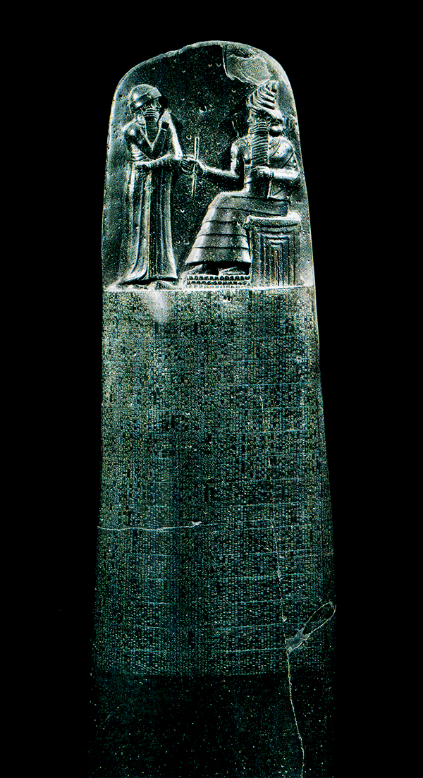 《漢穆拉比法典》是古代兩河流域文明的象征。這座在公元前18世紀(jì)建造的玄武巖石碑,上端有漢穆拉比從太陽(yáng)神沙馬什手中接受權(quán)杖的浮雕像,下面用楔形文字銘刻法典全文。法典除序言和結(jié)語(yǔ)外,計(jì)有3500行、282條,包括訴訟手續(xù),財(cái)產(chǎn)權(quán),損害賠償,租佃關(guān)系,債權(quán)債務(wù),婚姻家庭,繼承以及買(mǎi)賣(mài)奴隸等內(nèi)容,是迄今世界上完整保存下來(lái)的最早的一部法典。圖為現(xiàn)藏于法國(guó)巴黎盧浮宮的《漢穆拉比法典》。