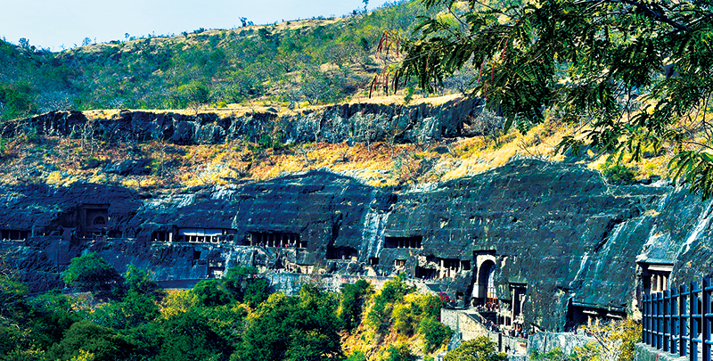 印度阿旃陀石窟鑿于一處馬蹄形暗色巖陡崖上,其形成年代主要分為兩個(gè)時(shí)期:公元前2世紀(jì)至公元前1世紀(jì)和公元5至6世紀(jì)。它集古代建筑、雕刻、繪畫(huà)之大成,融佛教信仰、文化變遷、社會(huì)生活于一體,既具有極高的藝術(shù)價(jià)值,又飽含深厚的歷史底蘊(yùn)。圖為在印度馬哈拉施特拉邦拍攝的阿旃陀石窟外景。 新華社記者 張迺杰/攝