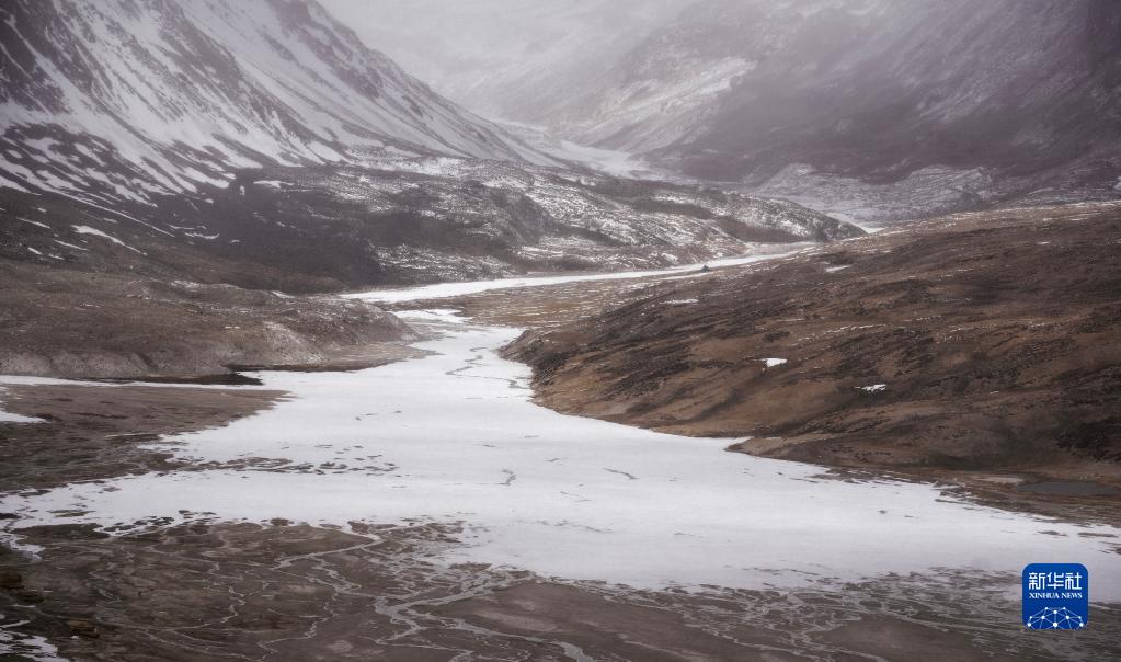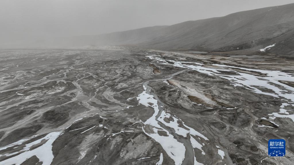 杰瑪央宗冰川融化后形成的河床(5月31日攝,無人機(jī)照片)。新華社記者 晉美多吉 攝