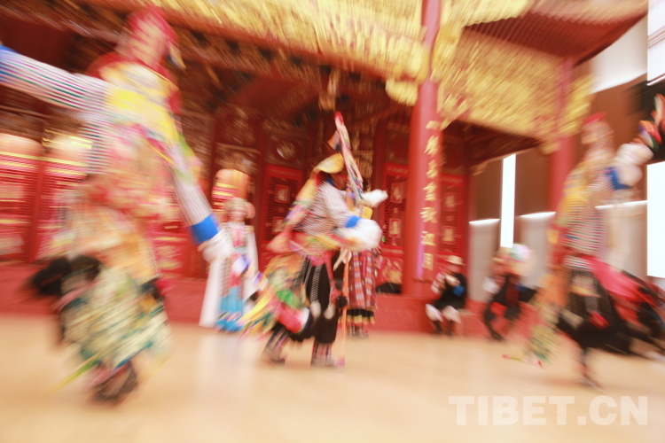 圖為拉薩市城關(guān)區(qū)娘熱民間藝術(shù)團(tuán)演員表演國家級非物質(zhì)文化遺產(chǎn)“嘎爾”攝影:劉莉