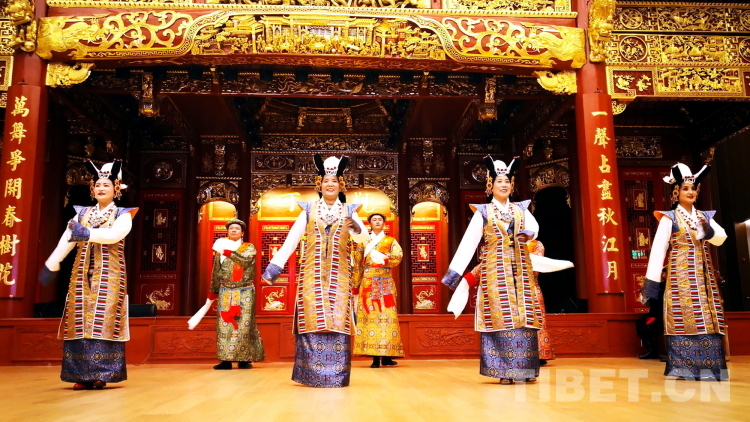 拉薩市城關(guān)區(qū)娘熱民間藝術(shù)團(tuán)曾參加北京奧運(yùn)會開幕式前文藝演出、中國共產(chǎn)黨成立100周年、西藏和平解放70周年等多項大型活動。曾獲中宣部、原文化部、國家廣電總局、國家新聞出版總署頒發(fā)的“全國農(nóng)民服務(wù)基層文化建設(shè)先進(jìn)集體”獎、第十屆中國藝術(shù)節(jié)“群星獎”、中國拉薩雪頓節(jié)“藏戲調(diào)演一等獎”等多個獎項。圖為拉薩市城關(guān)區(qū)娘熱民間藝術(shù)團(tuán)表演藏戲開場《溫巴頓》片段 攝影:劉莉