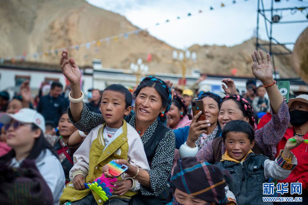 7月23日,在西藏定日2023珠峰音樂美食節(jié)現(xiàn)場,民間藝術團表演國家級非物質文化遺產(chǎn)定日洛諧。新華網(wǎng)發(fā) 李騰 攝