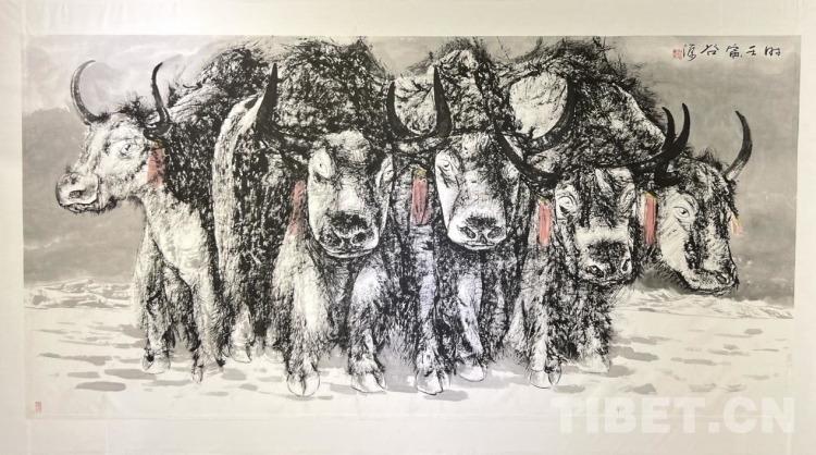 據(jù)了解,汪仕民先生,在西藏生活了三十余年,從事專業(yè)繪畫也已二十多年了。作為一名知名的職業(yè)畫家,西藏地域和人文環(huán)境是其創(chuàng)作題材選取的重要方向,他選取雪域牦牛作為繪畫方向課題研修,已有十余年之久。其創(chuàng)作成果形成了自身獨(dú)特而豐富的藝術(shù)特點(diǎn)和語(yǔ)言,作品流露著對(duì)西藏自然環(huán)境的敬畏,涌動(dòng)著對(duì)西藏人文歷史的感悟。