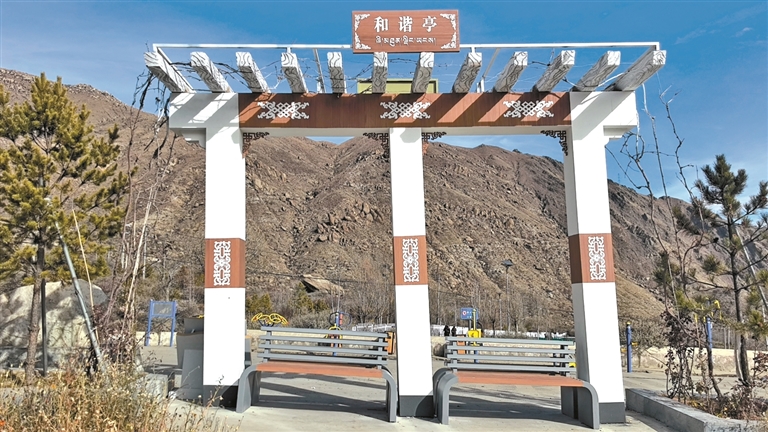 圖為哲蚌寺民族團結(jié)主題公園的和諧亭。記者 盧文靜 攝
