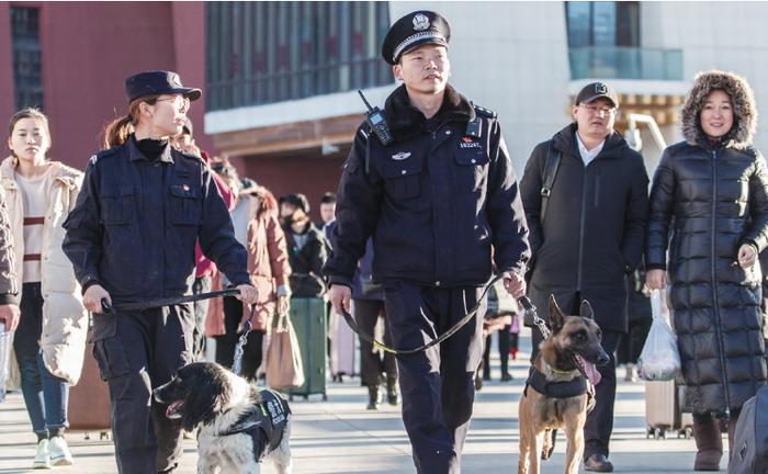 拉薩交警也將聯(lián)合多部門采取多項措施,保障全市道路交通安全暢通。此外,拉薩鐵路公安處也將多措并舉備戰(zhàn)春運,除了執(zhí)勤民警外,拉薩火車站還配備了經過專業(yè)訓練的警犬執(zhí)行安保任務。圖片來源:西藏商報