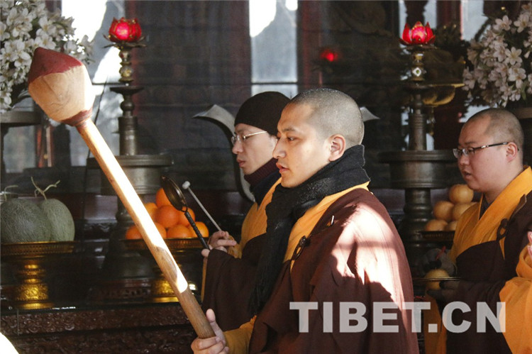 中國西藏網(wǎng)訊 今年適逢中國佛教協(xié)會名譽會長十世班禪大師圓寂30周年,1月28日上午9時,中國佛教協(xié)會及在京直屬寺院法師、工作人員、首都善信居士齊聚北京廣濟寺,隆重舉行紀念十世班禪大師圓寂30周年法會,深切緬懷十世班禪大師。法會禮請中國佛教協(xié)會演覺副會長、宗性副會長、祜巴等傣副會長主法,宏度副秘書長主持紀念儀式。三位法師拈香主法,帶領(lǐng)僧眾莊重誦經(jīng),圓滿完成法會儀軌。