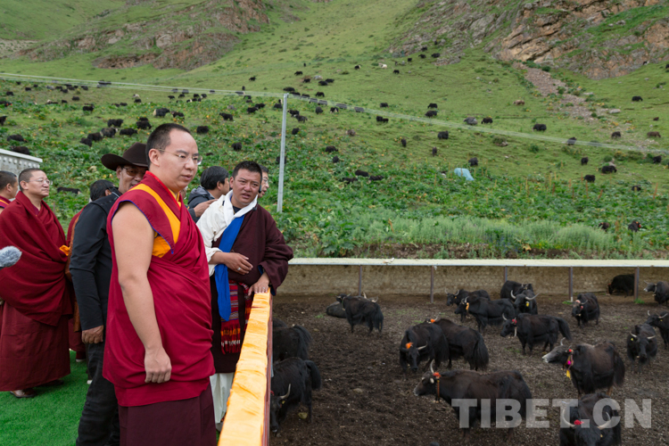 圖為2020年8月15日,班禪在西藏自治區(qū)那曲市嘉黎縣的牦牛養(yǎng)殖基地調(diào)研 攝影:鄭朔